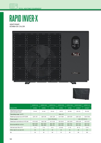 Advised pool volume m³ 20–40 25–50 30–60 40–75 55–100 65–120 90–160
