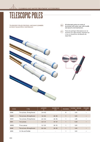 TELESCOPIC POLES FOR POOL VACUUM CLEANERS EN aluminium with outer coat, with handle