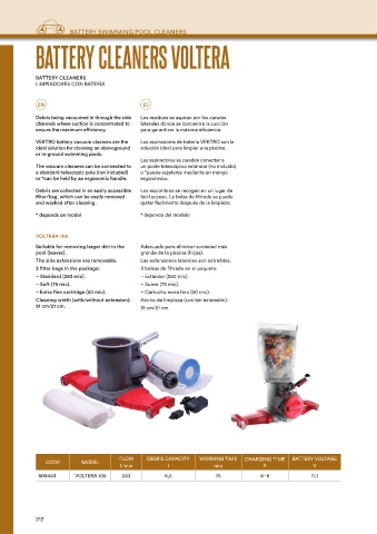 FLOW DEBRIS CAPACITY WORKING TIME CHARGING TIME BATTERY VOLTAGE