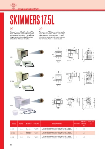 extensions. Skim Vac included. nes verticales. Placa de vacío incluida.