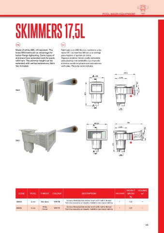 extended with vertical extensions. Skim skimmer puede ampliarse con extensiones