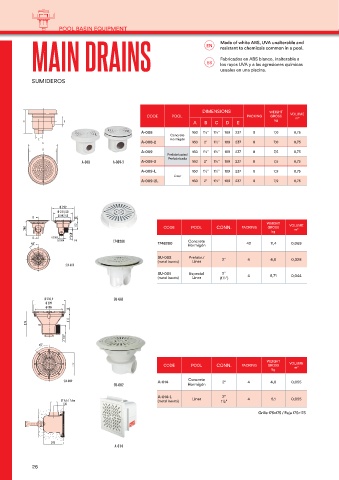 MAIN DRAINS EN Made of white ABS, UVA unalterable and