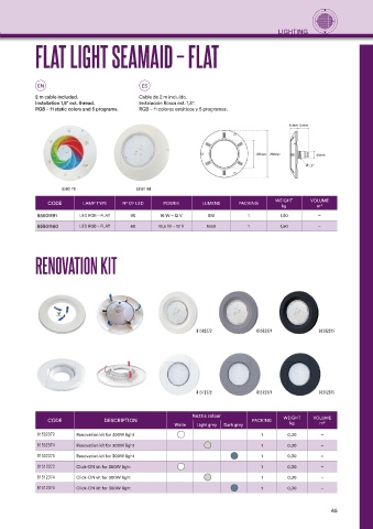 CODE LAMP TYPE N° OF LED POWER LUMENS PACKING WEIGHT VOLUME
