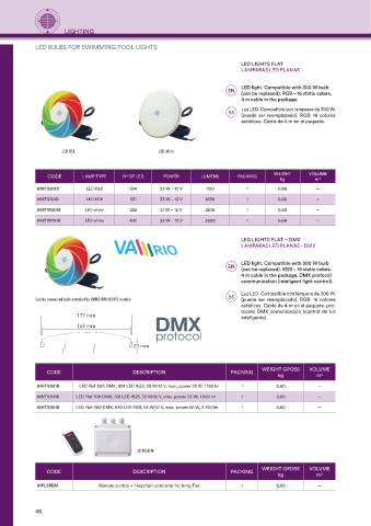 CODE LAMP TYPE N° OF LED POWER LUMENS PACKING WEIGHT VOLUME
