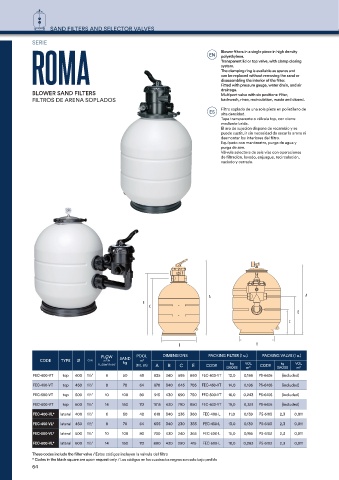 BLOWER SAND FILTERS Multiport valve with six positions: filter,