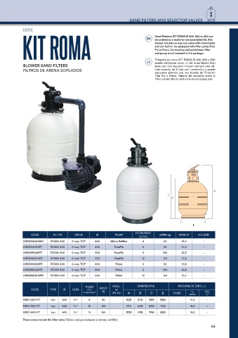 CODE FILTER VALVE Ø PUMP SAND kg WEIGHT VOLUME