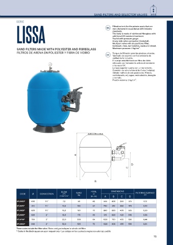CODE Ø CONNECTION m /h SAND m 3 FILTERING SURFACE