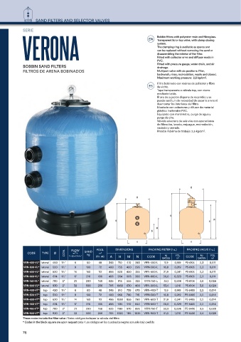 CODE TYPE Ø FLOW SAND POOL DIMENSIONS PACKING FILTER (1 u.) PACKING VALVE (1 u.)