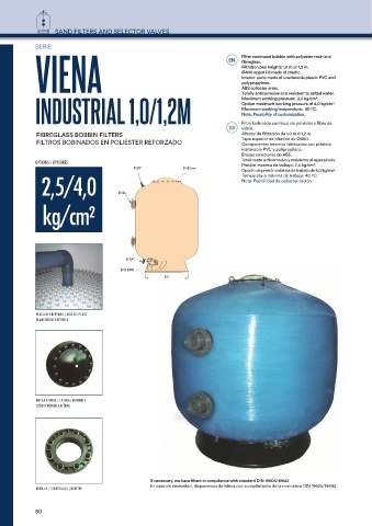 FIBREGLASS BOBBIN FILTERS Alturas de filtración de 1,0 m ó 1,2 m.