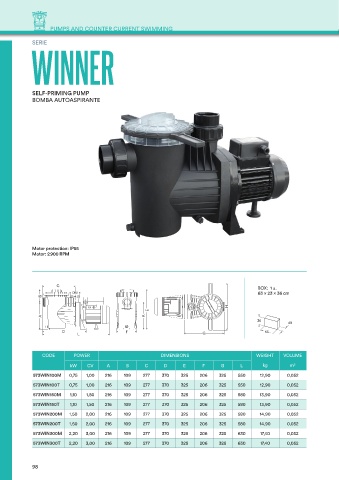 CODE POWER DIMENSIONS WEIGHT VOLUME