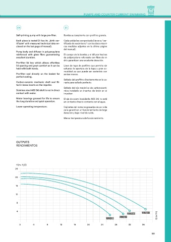 Self-priming pump with large pre-filter. Bomba autoaspirante con prefiltro grande.