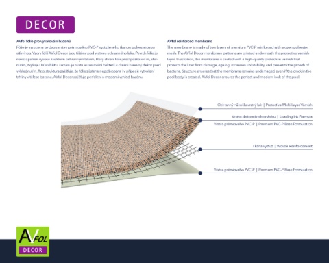 trhliny v tělese bazénu. AVfol Decor zajišťuje perfektní a moderní vzhled bazénu. pool body is created. AVfol Decor ensures the perfect and modern look of the pool.
