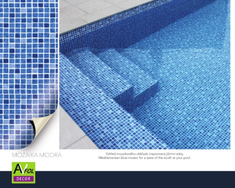 MOZAIKA MODRÁ Vzhled mozaikového obkladu inspirovaný jižními státy. Mediterranean blue mosaic for a taste of the south at your pool.