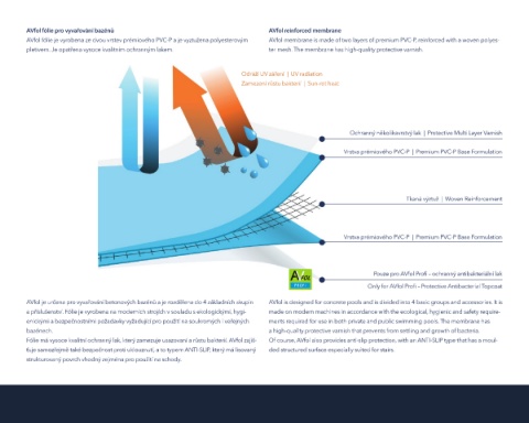 AVfol fólie je vyrobena ze dvou vrstev prémiového PVC-P a je vyztužena polyesterovým AVfol membrane is made of two layers of premium PVC-P, reinforced with a woven polyes-