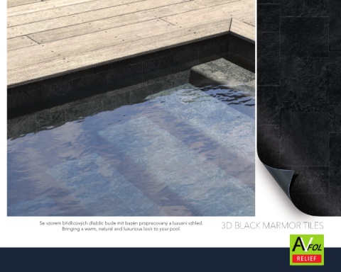 Se vzorem břidlicových dlaždic bude mít bazén propracovaný a luxusní vzhled. 3D BLACK MARMOR TILES Bringing a warm, natural and luxurious look to your pool.