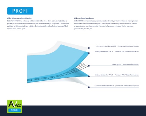 Fólie AVfol PROFI má ochranný antibak teriální lak z obou stran, a tím je vhodnější pro AVfol PROFI membrane has a protective antibacterial layer from both sides, making it more