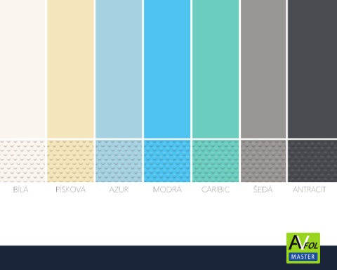 BÍLÁ PÍSKOVÁ AZUR MODRÁ CARIBIC ŠEDÁ ANTRACIT