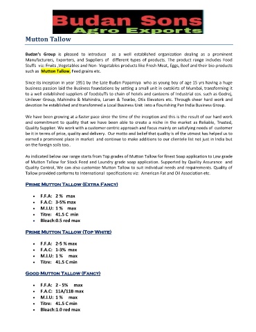 such as Mutton Tallow, Feed grains etc.
