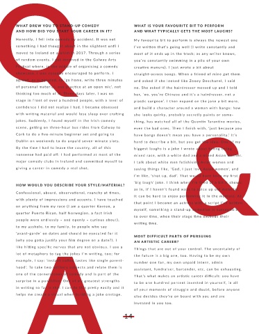 WHAT DREW YOU TO STAND-UP COMEDY WHAT IS YOUR FAVOURITE B IT TO PER F ORM