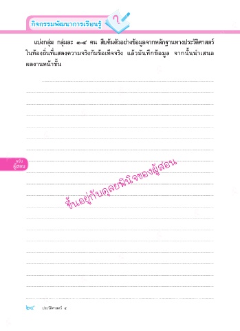 แบงกลุม กลุมละ ๓-๔ คน สืบคนตัวอยางขอมูลจากหลักฐานทางประวัติศาสตร