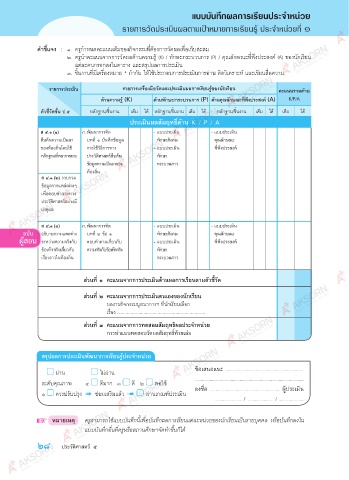 ☞ หมายเหตุ ครูสามารถใชแบบบันทึกนี้เพื่อบันทึกผลการเรียนแตละหนวยของนักเรียนเปนรายบุคคล หรือบันทึกลงใน