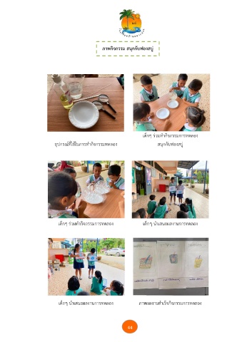 ภาพกิจกรรม สนุกกับฟองสบู่ เด็กๆ ร่วมทำกิจกรรมการทดลอง อุปกรณที่ใช้ในการทำกิจกรรมทดลอง สนุกกับฟองสบู่ ์ เด็กๆ ร่วมทำกิจกรรมการทดลอง เด็กๆ นำเสนอผลงานการทดลอง เด็กๆ นำเสนอผลงานการทดลอง ภาพผลงานสำเร็จกิจกรรมการทดลอง 44