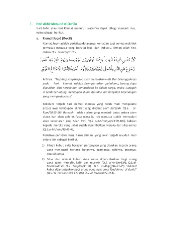 Hari Akhir atau Hari Kiamat menurut al-Qur’±n dapat dibagi menjadi dua,