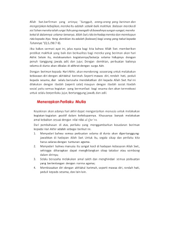 jawabkan di hadapan Allah Swt. Untuk itu, segala sikap dan perilaku kita