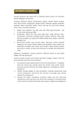 Cermati pemikiran dan karya Prof. Dr. Mahmud Syaltut berikut ini! Kemudian