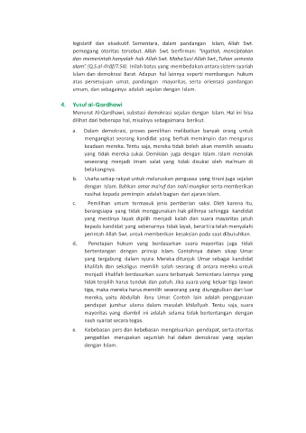 Menurut Al-Qardhawi, substasi demokrasi sejalan dengan Islam. Hal ini bisa