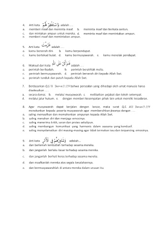 8. Agar musyawarah dapat berjalan dengan lancar, maka surat Q.S. Ali ’Imran/3:159