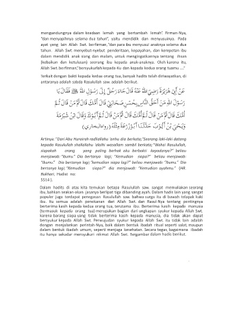 ibu. Itu semua adalah penekanan dari Allah Swt. dan Rasul-Nya tentang pentingnya
