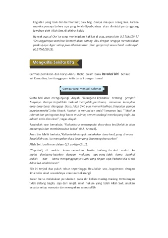 dosa-dosa besar dianggap biasa. Allah Swt. pun memerintahkan, timpakan gempa