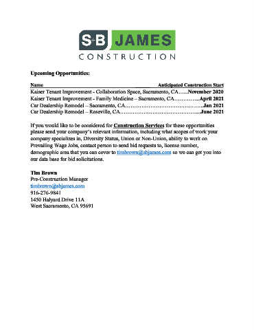 If you would like to be considered for Construction Services for these opportunities