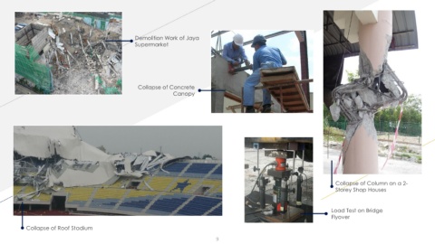 Demolition Work of Jaya Supermarket Collapse of Concrete Canopy Collapse of Column on a 2- Storey Shop Houses Load Test on Bridge Flyover Collapse of Roof Stadium 9