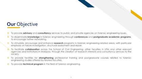 To facilitate collaboration across the School of Civil Engineering, other faculties in UTM and other relevant