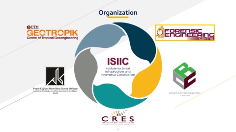 Organization ISIIC Institute for Smart Infrastructure and Innovative Construction Pusat Kajian Alam Bina Dunia Melayu Centre for the Study of Built Environment in the Malay World 4