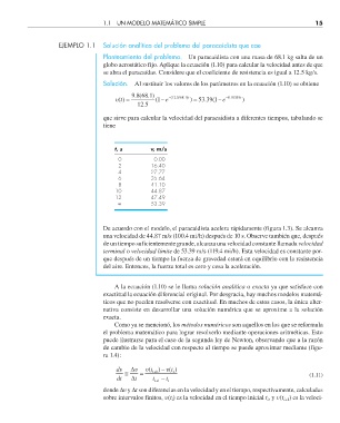 EJEMPLO 1.1 Solución analítica del problema del paracaidista que cae
