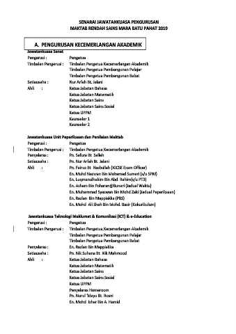 Setiausaha : Pn. Nur Arfah Bt. Jelani