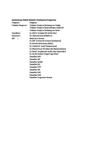 Timbalan Pengerusi : Timbalan Pengetua Pembangunan Pelajar
