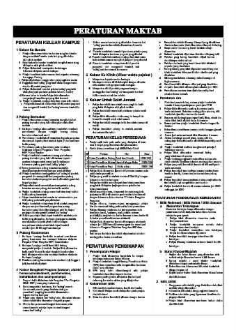 maktab. ii. Pelajar hendaklah mematuhi peraturan pakaian solat ii. Pelajar tidak dibenarkan pulang ke asrama pada
