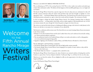 Welcome to the RANCHO MIRAGE WRITERS FESTIVAL!