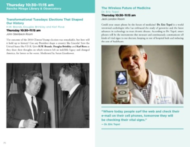 Thursday 10:30–11:15 am advances in technology to treat chronic disease. According to Dr. Topol, smart