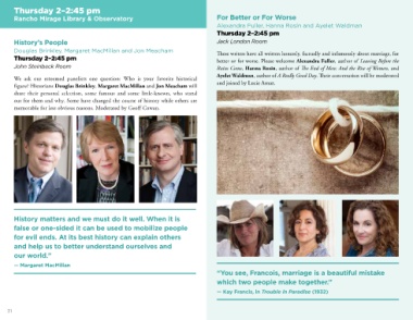 Douglas Brinkley, Margaret MacMillan and Jon Meacham These writers have all written honestly, factually and infamously about marriage, for