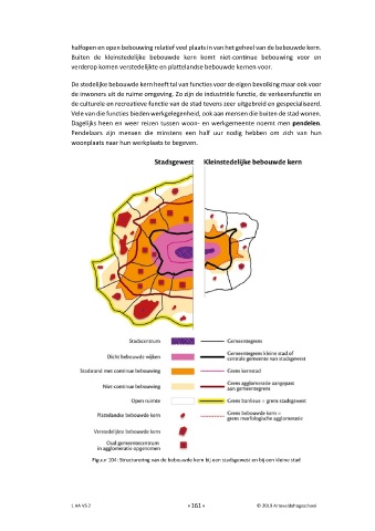 Figuur 104: Structurering van de bebouwde kern bij een stadsgewest en bij een kleine stad