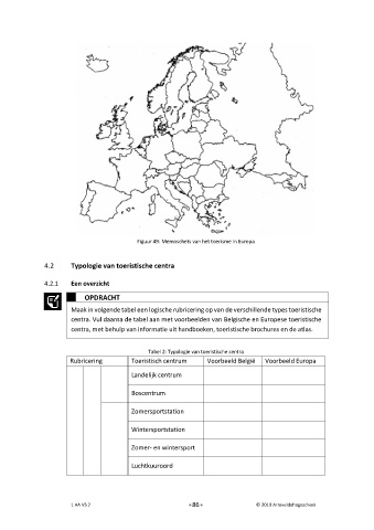 centra. Vul daarna de tabel aan met voorbeelden van Belgische en Europese toeristische