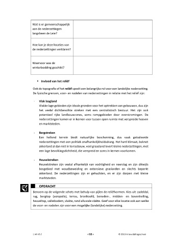 De fysische grenzen, voor- en nadelen van nederzettingen in relatie met het reliëf zijn: