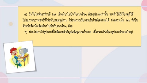 6) ถ้าเว็บไซด์ของท่านมี link เชื่อมโยงไปยังเว็บเพจอื่นๆ ด้วยรูปภาพเท่านั้น อาจท าให้ผู้เรียกดูที่ใช ้