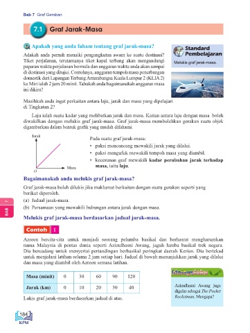 Melukis graf jarak-masa berdasarkan jadual jarak-masa.