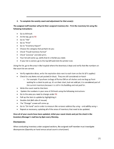 4. To complete the weekly count and adjustment for that area(s):